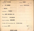Data di nascita: 10/08/1923 Luogo di nascita: Torino Residenza: Torino Professione: impiegato Luogo di cattura: Sebenico Data di cattura: 08/09/1943 Data di liberazione e data di rimpatrio: 20/07/1945 Liberazione e/o rimpatrio: rimpatrio Internato militare/grado: sergente Allegati: duplicato scheda Note: iscritto all'ANEI dal 15 ottobre 1945