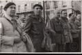 GIM 3 AIS 5 Umberto Lazagna (Canevari), Carlo Farini (Simon), Anelito Barontini, Gelasio Adamoli e Adriano Agostini (Ardesio) sfila con altri patrioti in piazza della Vittoria (via Cadorna); Genova (25-27 aprile 1945); didascalia manoscritta sul verso (cm 17,1x11)