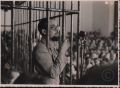 GIM 3 PS 2 “Processo Spiotta a Chiavari: Spiotta nella Gabbia“, Chiavari (GE), sd (agosto 1945), didascalia manoscritta sul verso; annotazione manoscritta sul verso: “Saetta”, dono di Paolo Castagnino (Saetta); (cm 12x17)