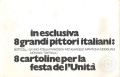 "In esclusiva 8 grandi pittori italiani", cartoline promozionali PCI in occasione della Festa dell'Unità; s.d.