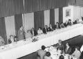 Riunione conviviale del 28 settembre 1975 sul tema: Problemi delle imprese nel contesto economico della situazione attuale. Relatore: Carlo Donat - Cattin, ministro dell'Industria. Ospiti tra gli altri: il Prefetto di Torino, Giuseppe Salerno e il presidente di Federmeccanica, Walter Mandelli. Sei scatti in bianco e nero