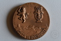Medaglia in bronzo commemorativa donata ai partecipanti al Primo Convegno Internazionale Leopardiano del 1962 della Città di Recanati. Sul fronte: ritratto di profilo di Giacomo Leopardi circondato dall'iscrizione "GIACOMO LEOPARDI"; sul retro: in basso panorama della città di Recanati con iscrizione "CITTA DI RECANATI", in alto leone rampante con spada (stemma della città) e simbolo araldico con giglio e lira, circondati dall'iscrizione "I° CONV. INTER. STUDI LEOPARDIANI", al centro "1962".